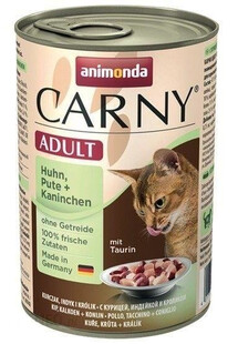 Animonda Carny Adult Huhn Pute Kaninchen 400 g - mokra karma dla dorosłych kotów z kurczakiem indykiem i królikiem 400g
