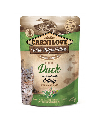 Wyjątkowe danie dla Twojego kota! Aż 85% mięsnych składników - smakowita i pełnowartościowa kaczka z dodatkiem ukochanej przez koty kocimiętki! Bez zbóż, bez ziemniaków i bez barwników i konserwantów. Prosty skład mokrej karmy Carnilove to gwarancja najwyżej jakości dla Twojego kota.Bez zbóż i ziemniaków!