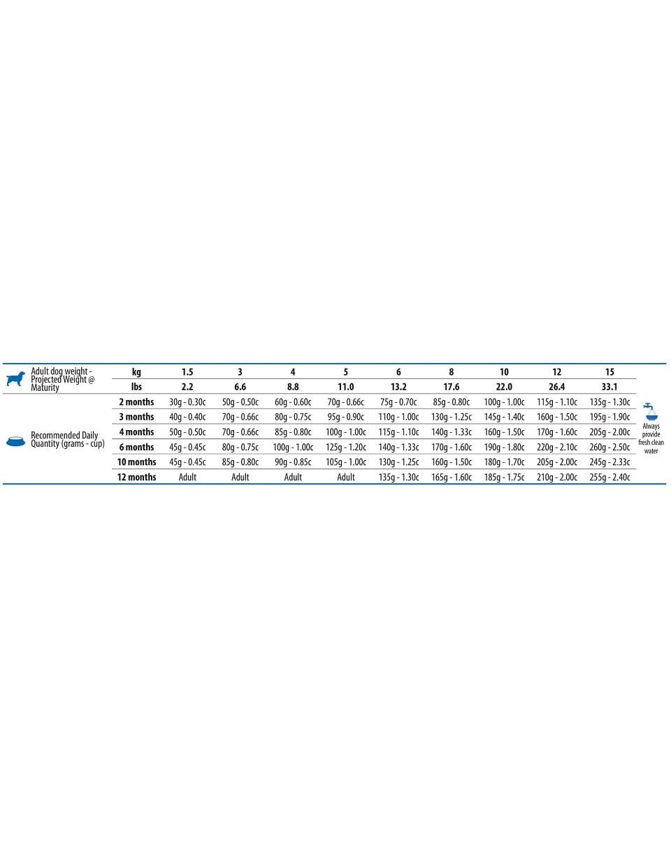 Podane dawkowanie jest orientacyjne i należy dopasować je do swojego zwierzaka indywidualnie, biorąc pod uwagę stopień aktywności oraz stan zdrowia zwierzęcia.