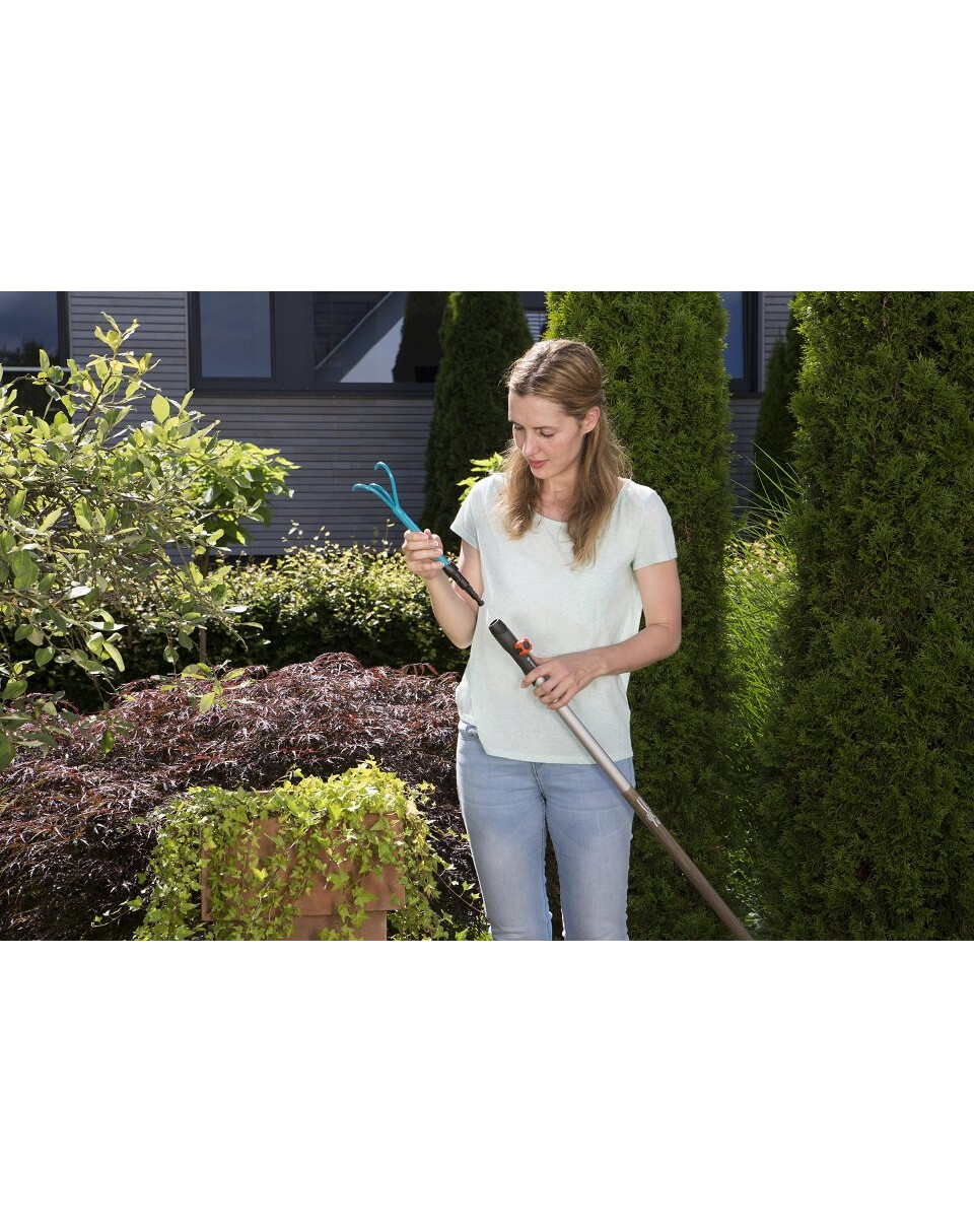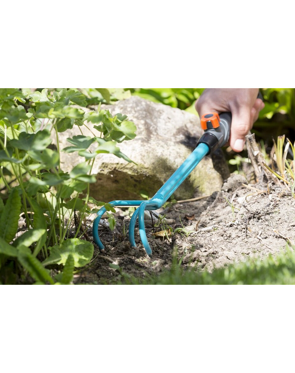 GARDENA combisystem - duże pazurki pozwalają łatwo spulchnić i napowietrzyć glebę. Dzięki wymiennym narzędziom system kombinowany GARDENA zapewnia elastyczność użytkowania. Duży pazur jest kompatybilny ze wszystkimi uchwytami systemu kombinowanego GARDENA i można go łatwo przymocować do uchwytu. Aby pracować wygodnie i bez schylania się, wystarczy zdjąć uchwyt i zastąpić go uchwytem systemu kombinowanego. Combisystem – trzonek przedłużający idealnie nadaje się do przedłużania narzędzi ręcznych. Bezpieczne połączenie pazurów z rękojeścią zapewnia komfortową pracę w każdej sytuacji. Ergonomiczna rękojeść z miękkimi elementami sprawia, że narzędzie doskonale leży w dłoni, a wygięcie rękojeści zapobiega ślizganiu się narzędzia. Duże pazury o szerokości 7 cm wykonane są z wysokiej jakości stali, a powłoka z termoutwardzalnego tworzywa sztucznego gwarantuje wysoką trwałość. Aby zaoszczędzić miejsce na przechowywanie pazurów, można zastosować combisystem – wieszaka do narzędzi Flex.