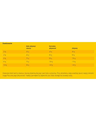 Suszony łosoś 22,0%, suszone ziemniaki, suszone bataty, tłuszcz drobiowy, białko ziemniaczane, wysłodki buraczane, mączka z grochu, mączka z chleba świętojańskiego, hydrolizowane białko z ryb, minerały (Trójpolifosforan sodu 0,35%), hydrolizowane białko zwierzęce, wytłoki z jabłek, drożdże, zioła, owoce, suszony korzeń cykorii (naturalne źródło inuliny).Opinie