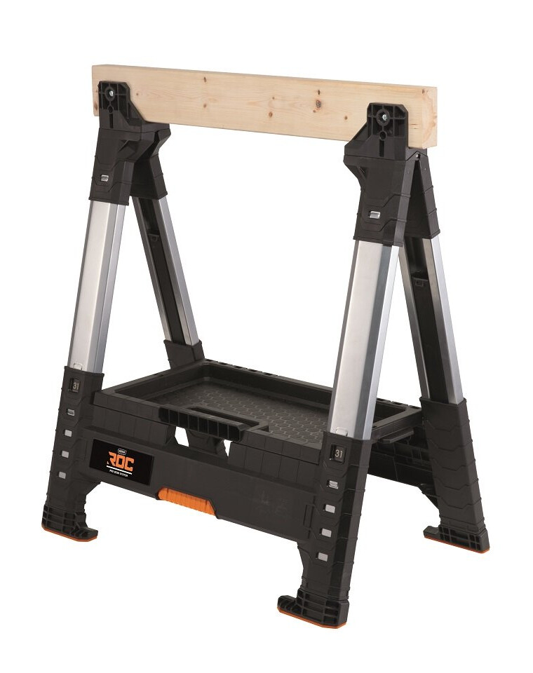 Potrzebujesz miejsca na narzędzia lub puszki z farbą? Stojak Keter LUMBER JACK oferuje tzw. tacę roboczą, która, oprócz podstawowej funkcji półki, po złożeniu służy jako wygodny uchwyt do transportu. Dzięki składanej konstrukcji oszczędzasz miejsce i bez trudu zmieścisz stojak w bagażniku.