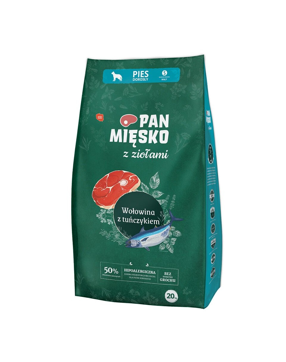 Pan Mięsko z ziołami to propozycja dla czworonogów i ich właścicieli, którzy poszukują karmy przygotowanej ze starannie dobranych składników. Dodatek kompozycji ziół tworzy aromatyczną porcję smaku i zdrowia dla Twojego psa.