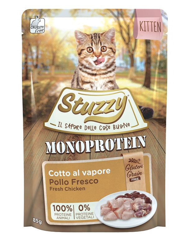 70% świeżego kurczaka, 28,6% bulionu z kurczaka, 1% minerałów, olej z łososia 0.2%, olej słonecznikowy 0,2%.