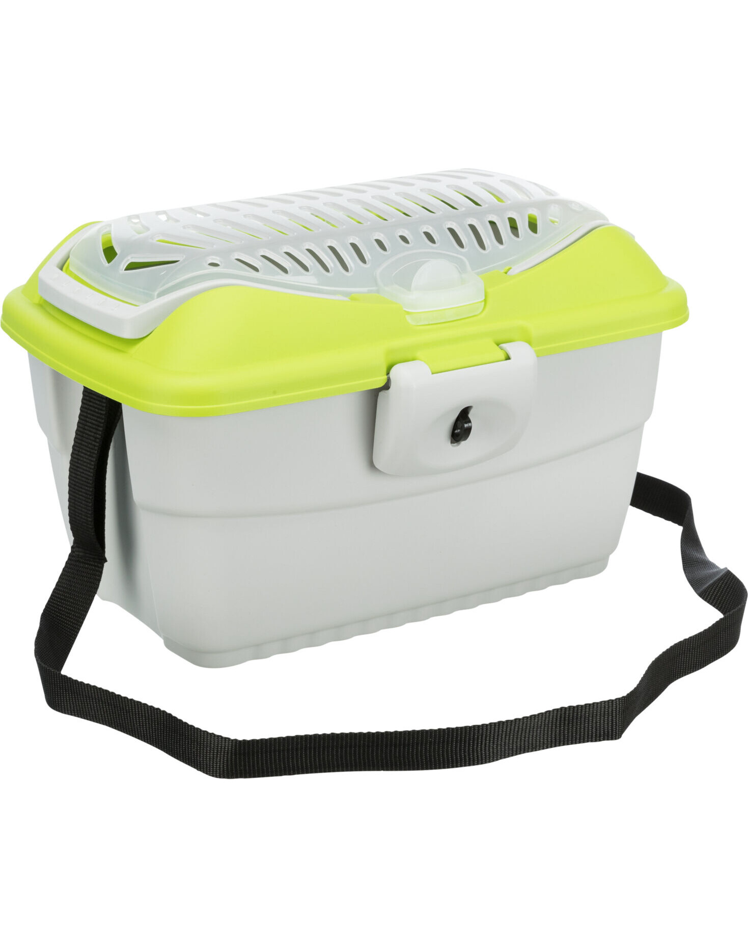 Przenośny transporter Mini-Capri to lekki i funkcjonalny produkt zaprojektowany z myślą o wygodnym i bezpiecznym przewozie małych zwierząt takich jak króliki miniaturowe, świnki morskie czy inne drobne gryzonie. Umożliwia łatwy dostęp dzięki otwieranej od góry klapie z zasuwką, co ułatwia wkładanie i wyjmowanie zwierzątka.