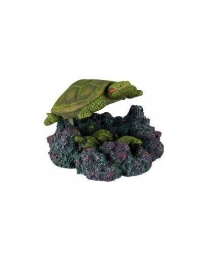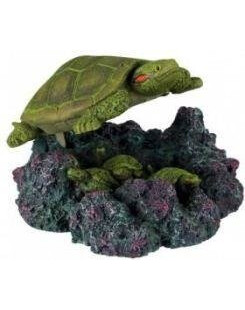 Chciałbyś zmienić swoje akwarium w zaskakujące i niepowtarzalne miejsce? Wystarczy odrobina wyobraźni, nieco zapału i kilka wyjątkowych dekoracji akwarystycznych, które odmienią dno Twojego domowego zbiornika wodnego! Dekoracja w kształcie żółwia unoszącego się nad wysepką, na której pozostawia małe żółwiki, jest fenomenalną ozdobą, która nada Twojemu akwarium niesamowitego charakteru. Oglądający akwarium goście poczują się jak w profesjonalnym akwanarium, gdzie na każdym kroku czeka ich niespodzianka. Starannie wykonana dekoracja od Trixie jest zrobiona z żywicy poliesterowej, co sprawia, że jest w pełni bezpieczna dla Twoich rybek. Produkt nie wpływa na jakość wody. Jego nieodwołalnym atutem jest fakt, że można go podłączyć do pompy powietrznej. Wymiary: 15 cm