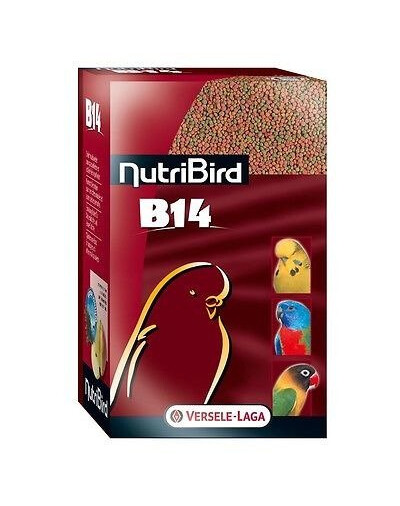 NutriBird B 14 jest zbilansowaną, kompletną karmą bytową dla papużek falistych i innych małych papużek. Także dobrze dostosowana dla nierozłączek, lakówek i wróbliczek. Granulat o naukowo zweryfikowanym składzie, oparty został na wyselekcjonowanych zbożach, świeżych owocach i zawiera 50 % prosa. W pełni strawny, bez strat. Zawiera Florastimul, wspomagający florę jelitową i zapobiegający niedomaganiom jelitowym. O ile ptak nie jest przyzwyczajony do pokarmu granulowanego należy stopniowo przechodzić na taki nowy typ karmy.