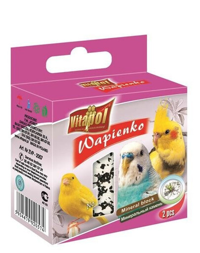 Wapno Vitapol jest podstawowym składnikiem budulcowym kośćca, jest również niezbędny do budowy skorupek ptasich jaj w trakcie lęgów oraz w okresie pierzenia. Kostka wapienna została wzbogacona o nasiona czarnuszki, co czyni ją bardziej atrakcyjną i smakowitą.Składniki: