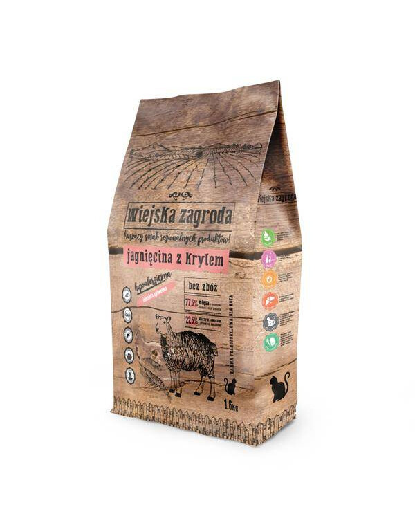 Wiejska Zagroda Jagnięcina z Krylem To pyszna i zdrowa propozycja dla wszystkich kotów, szczególnie polecana mruczkom po kastracji i sterylizacji. Znajdziecie w niej zdrowe mięso jagnięce, bogatego w białko kurczaka oraz wyjątkowy składnik – kryl antarktyczny, który jest źródłem wielu niezbędnych przeciwutleniaczy, witamin, minerałów oraz kwasów tłuszczowych w diecie każdego kota. Całość dopełnia olej z łososia, który oprócz dobroczynnego wpływu na cały organizm, dba o dobrą kondycję skóry i piękną lśniącą sierść! To formuła dla tych kotów, które chcą utrzymać idealną sylwetkę!Naturalny produkt bez konserwantów i zbóż